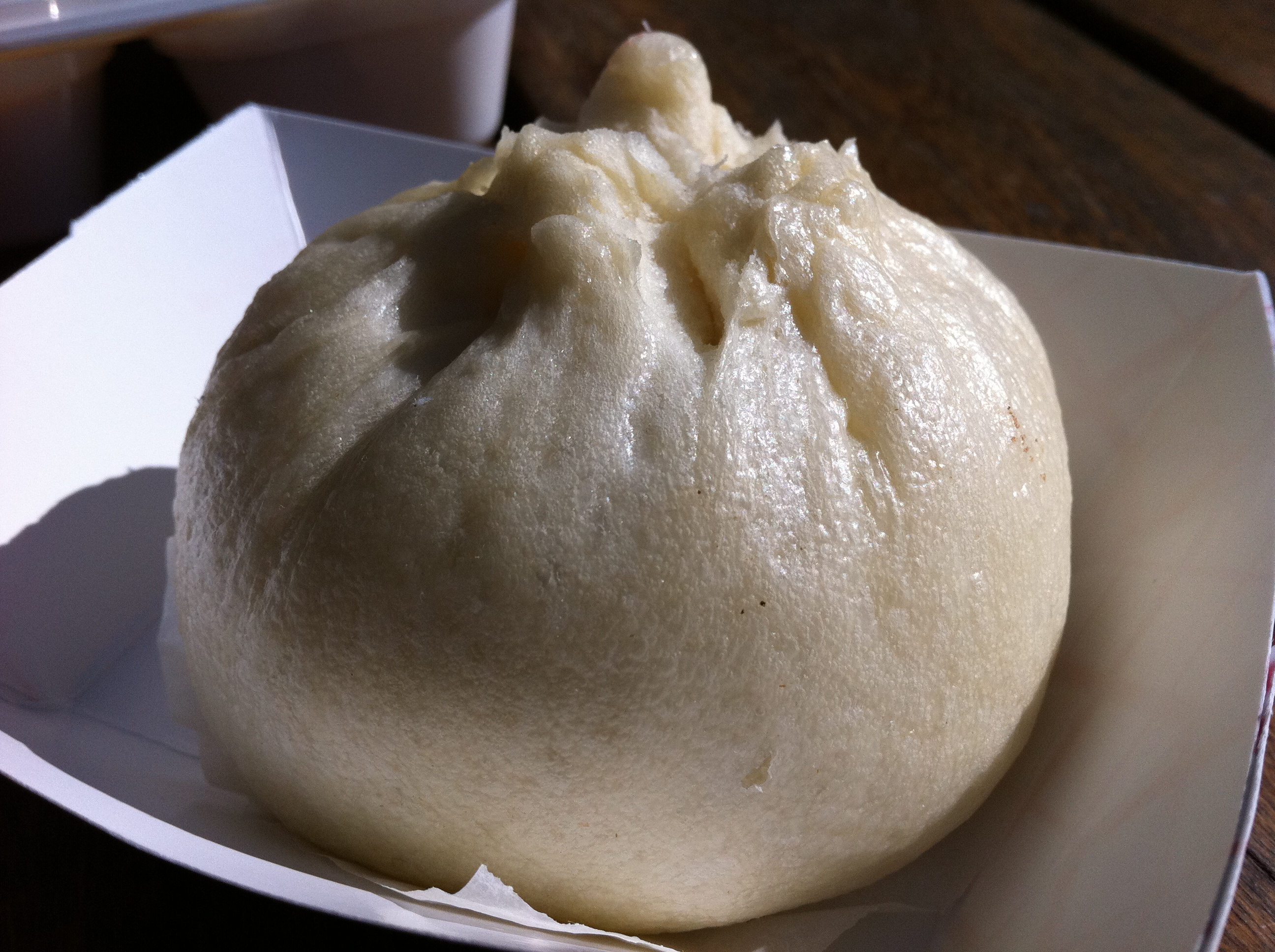 i went to Out The Door for lunch with my buddy Courtney and ordered the vegetarian curry special…. and swayed by Court’s order (imperial rolls + one steamed chicken bun) i decided to go crazy and throw in one steamed vegetarian bun for shits & giggles.