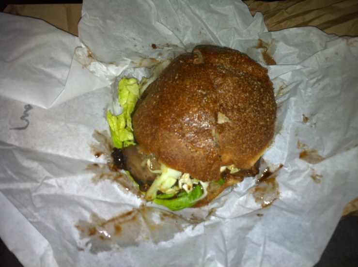 The next mushroom sandwich breakthrough comes from San Francisco star, The Sentinel. A small outpost in SOMA serving up a quite an array of continuously changing sandwiches, salads and lemonades. There’s always a line down the street and you know that means it’s GOOD! Yesterday I gorged on the BBQ mushroom sandwich with mustard coleslaw and goat cheese. It was SO SO SOOOO GOOD. So good that I didn’t want to wash my hands afterwards in order to get whiffs of the sweet and tangy BBQ sauce throughout the afternoon. I know, it’s sick. ANYWAYS, unfortunately the pics I have are pretty terrible, and definitely do not do it justice, but here they are: