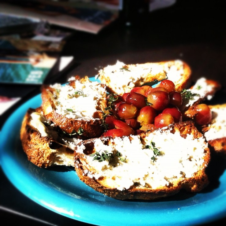 I used goat cheese and olive bread instead! Also added a little honey for some extra sweetness.
